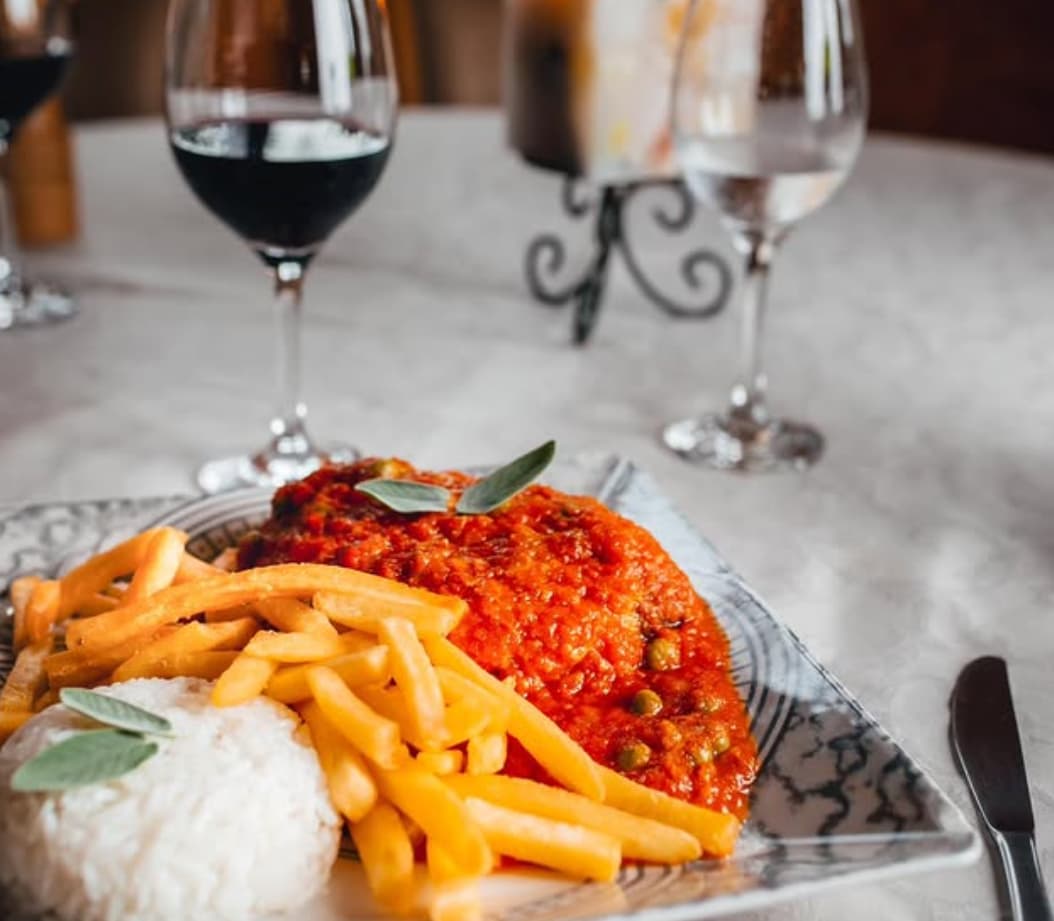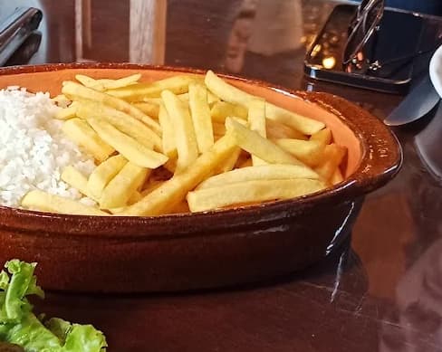 (servido na pedra com tomates, cebola e pimentão, acompanha arroz e fritas)