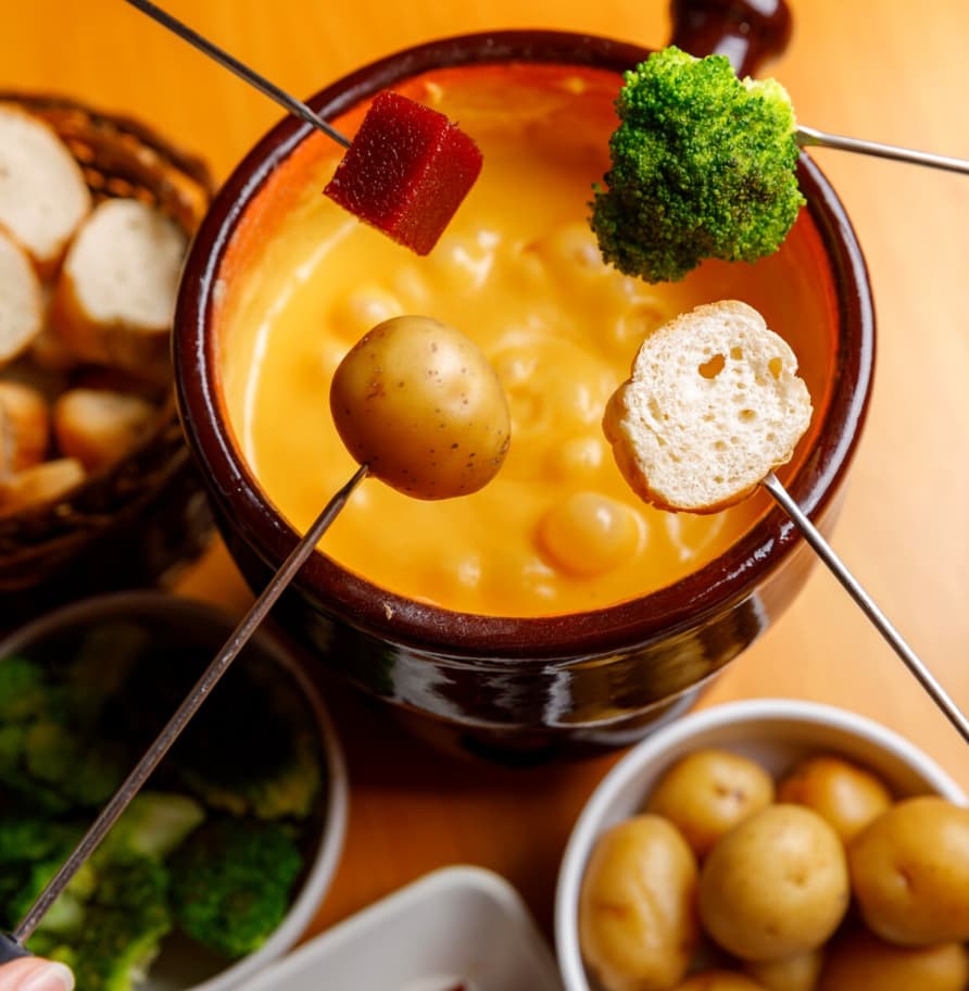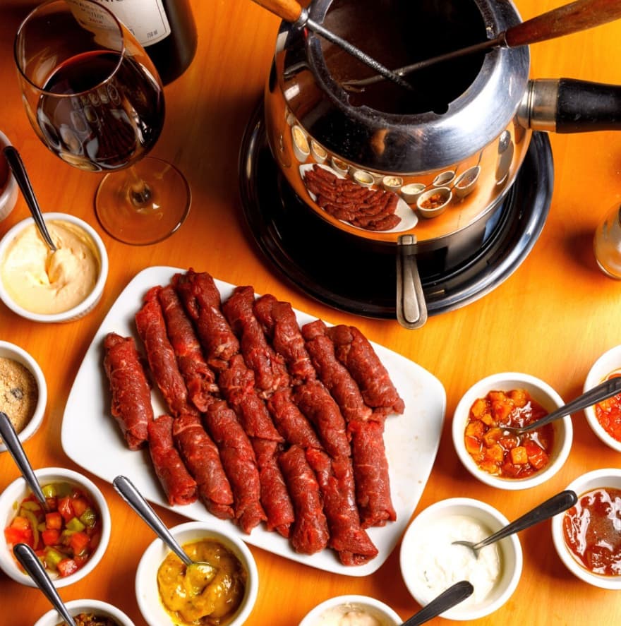 Fondue Bourguignonne (carnes fritas em gordura vegetal de coco)