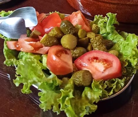 (cebola, tomate, pimentão, camarão, molho de tomates)