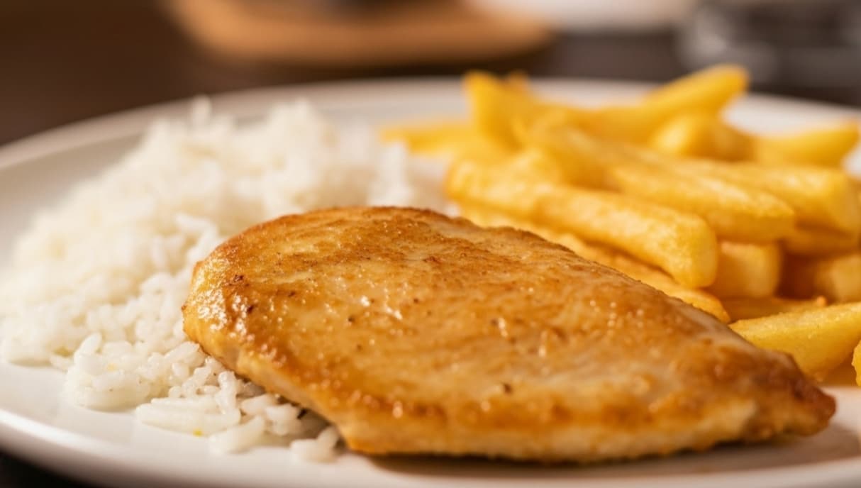 (recheado com presunto e queijo, acompanha arroz e fritas)